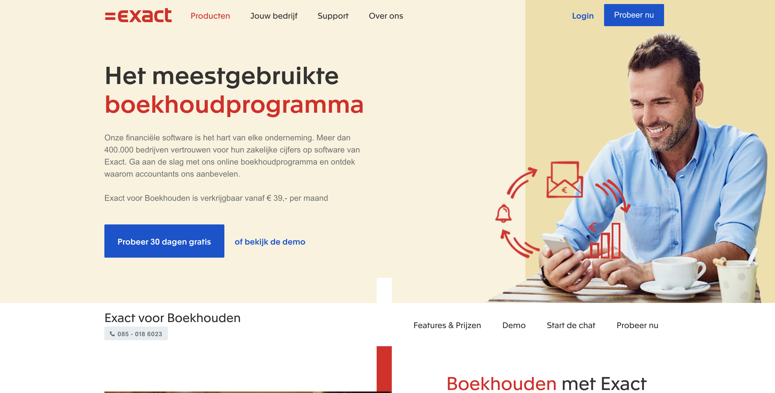Alle softwarepakketten die Exact aanbiedt zijn gratis te proberen voor 30 dagen. Waar ze ook heel duidelijk in zijn is dat na deze 30 dagen je proeftijd automatisch wordt gestopt. Nooit zul je dus voor onverwachte kosten komen te staan. Dit zegt wat over de werkwijze van het bedrijf. Ze geloven in hun product en dat laten ze onder andere blijken door deze transparante policy te handhaven.